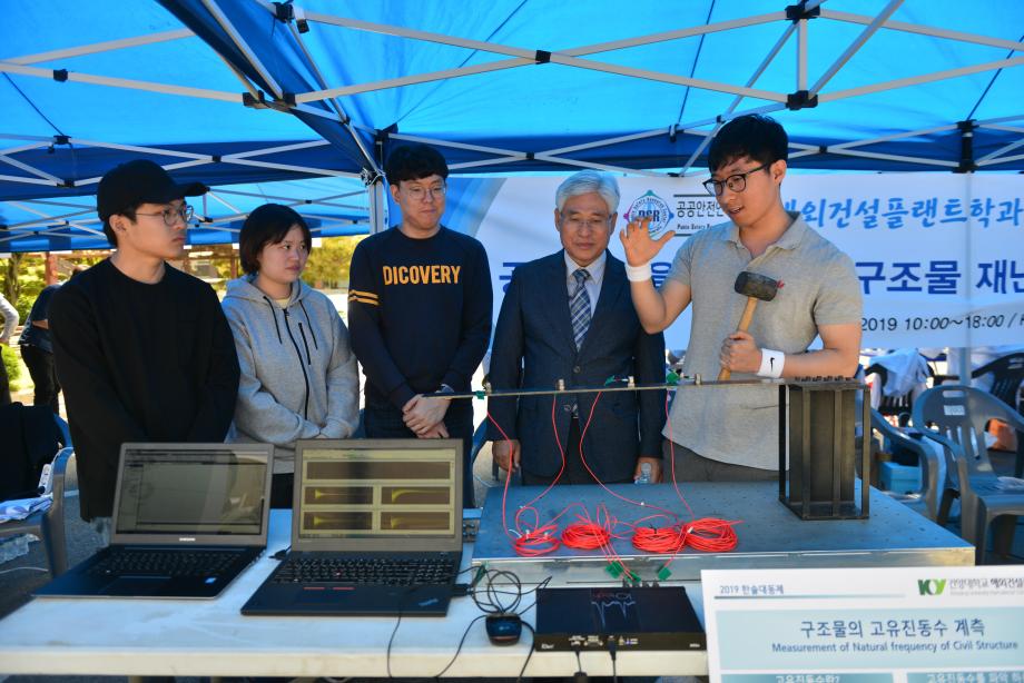 건양대 해외건설플랜트학과, 공공안전연구소 프로그램 참여 성과 전시회 개최 건양대학교(총장 이원묵) 공공안전연구소(소장 허광희)가 8일부터 9일까지 이틀간 진행되는 건양대학교 한솔대동제에서 ‘공공안전을 위한 건설구조물 재난예방기술 홍보 전시회’를 개최했다. 공공안전연구소 연구원과 건양대 해외건설플랜트학과 재학생 등 60여명이 함께 참여한 이번 전시회는 ‘구조물의 고유진동수 계측장비’, ‘사장교 진동제어 장치’ 등 공학전공지식이 공공안전 분야에 적용돼 재난을 예방하는 사례를 비전공 재학생 및 일반인이 알기 쉽게 소개함으로써 공공안전에 관심을 갖도록 기획됐다. 특히 공공안전연구소 인력양성 프로그램에 참여한 학생들이 본인들이 진행한 전공동아리 활동과 캡스톤디자인 등 각종 경진대회에 참가하면서 갈고닦은 지식을 실제 우리 사회의 공공안전에 적용하고 활용하는 사례를 적극 소개하는 시간을 가졌다. 이번 전시회에 참여해 실제 공공안전기술을 시연한 참가 학생들은 “공학전공지식이 건설 분야와 접목되어 공공안전에 기여하는 사례를 소개할 수 있는 기회를 갖게 되어 보람 있었다”며 “큰 인명피해를 불러올 수 있는 대형재난이 사전에 잘 대처하면 충분히 예방할 수 있다는 것을 앞으로도 꾸준히 알려나갈 것”이라고 밝혔다. 한편 2018년 교육부와 한국연구재단이 주관하는 ‘이공분야 대학 중점 연구소 지원사업’에 선정된 건양대 공공안전연구소는 9년간 약 57억원을 지원받아 재난안전에 관한 연구를 수행하며 공공안전에 기여할 인력양성 및 기술개발을 진행하고 있다. |
