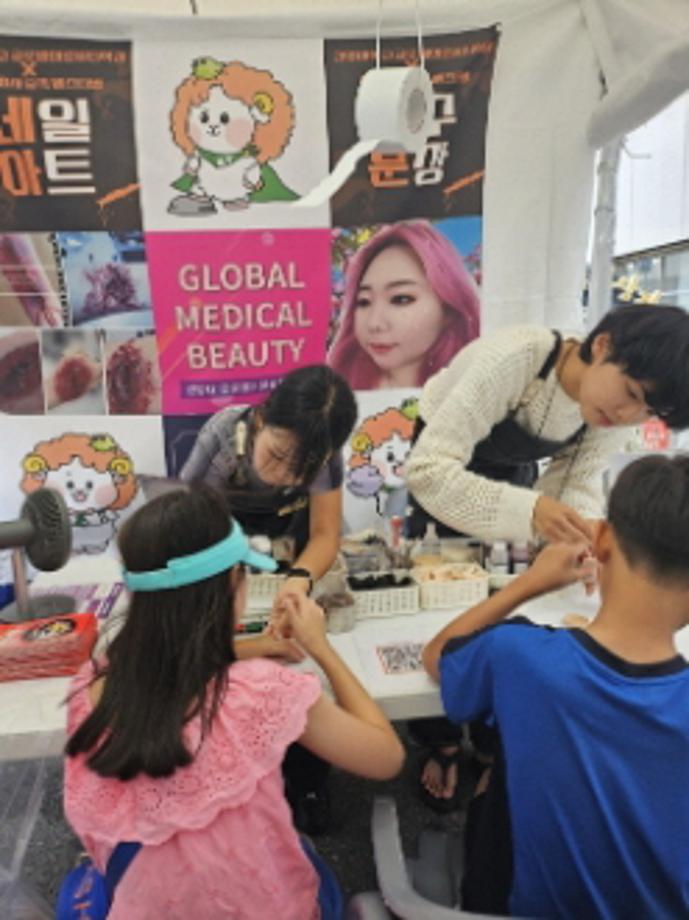 글로벌의료뷰티학과는 17일 학과 내 학생회 및 메이크업동아리(MAC), 네일아트동아리(Nail Studio) 학생들이 참여한 가운데 특수분장 및 아이돌 메이크업 등에 대한 체험부스를 운영했다.
