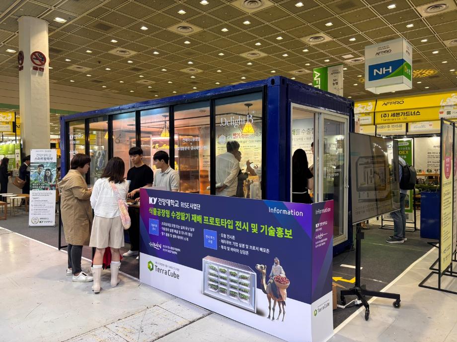 건양대학교 RISE 사업단은 논산시 농촌활력과와 협력하여 국내외 시장을 겨냥한 스마트농업 기술을 선보인다. 특히 동남아시아와 중동 지역을 타겟으로 한 '이동형 스마트 식물공장' 딸기 재배 프로토타입 모델을 집중 홍보하며, 2026학년도 신설 예정인 식품생명공학과와 스마트팜학부의 인재 양성 프로그램도 적극적으로 알렸다.